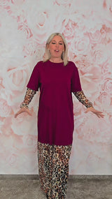 Une robe fluide et confortable, rehaussée d'une touche de modernité grâce à l'association de maille et de tulle imprimé animal. Parfaite pour un look décontracté et élégant, elle flatte particulièrement la silhouette grâce à son drapé et son volume.