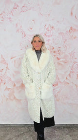 Un abrigo cálido y elegante que combina tejido suave con detalles de piel ecológica en el cuello y los bolsillos. Su diseño recto y su largo favorecedor lo convierten en una prenda imprescindible para looks de invierno sofisticados y con estilo.