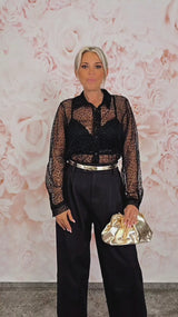 BLUSA TRANSPARENTE ENCAJE NEGRO