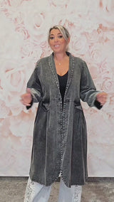 CHAQUETA KIMONO BORDADA A MANO GRIS