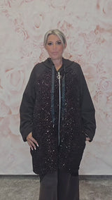 CHAQUETA CON LENTEJUELAS Y CAPUCHA