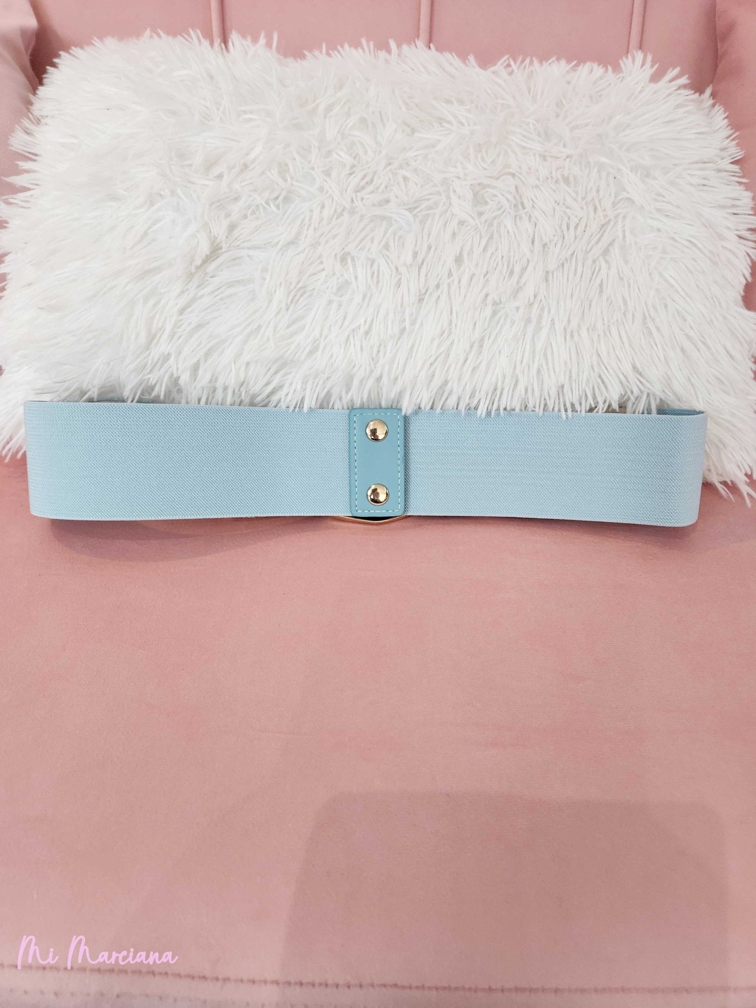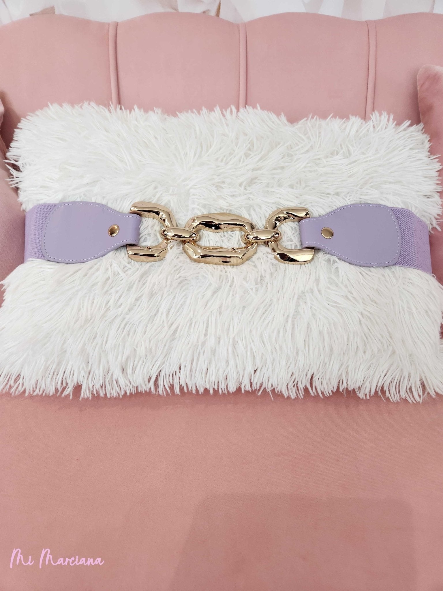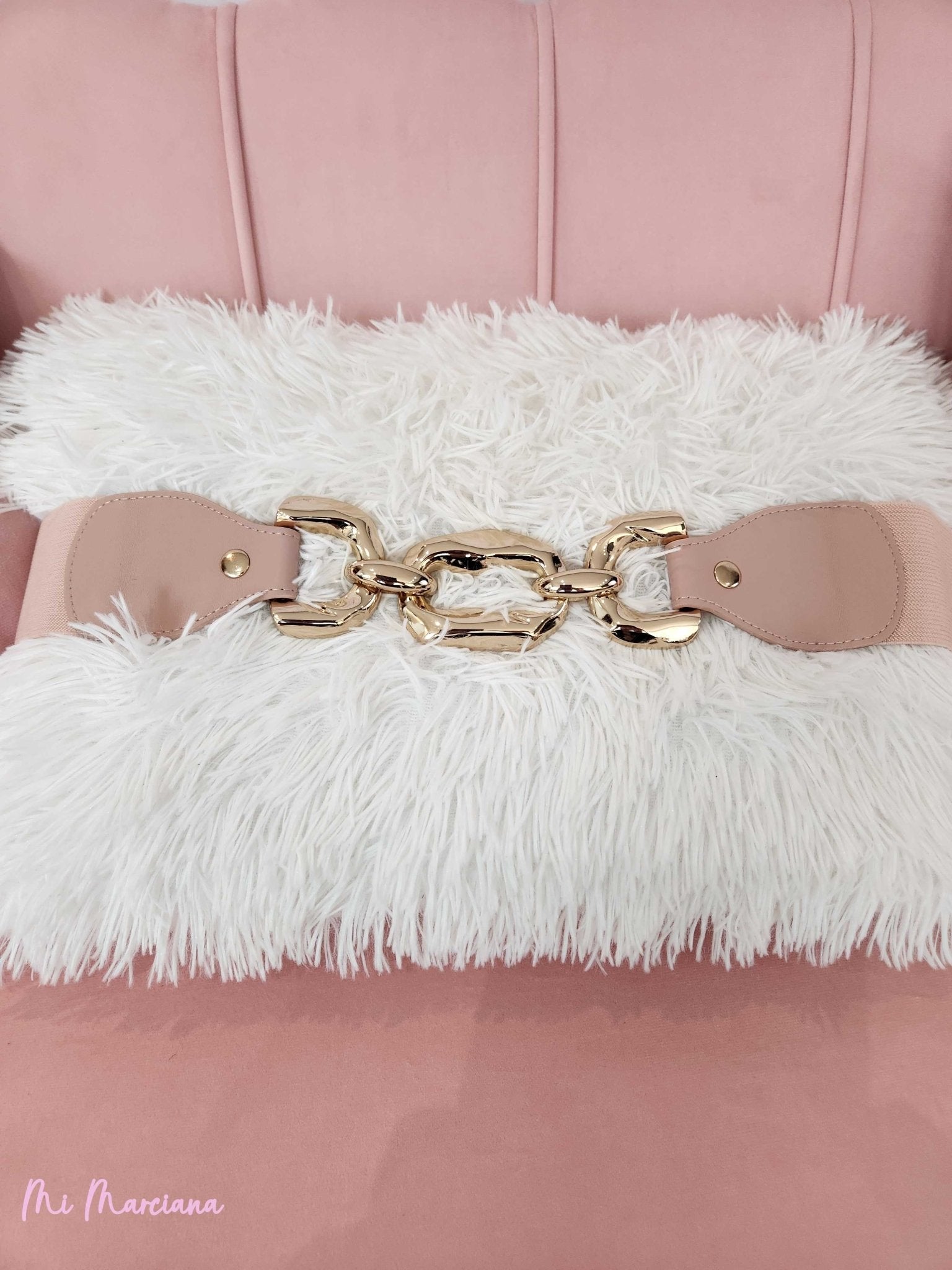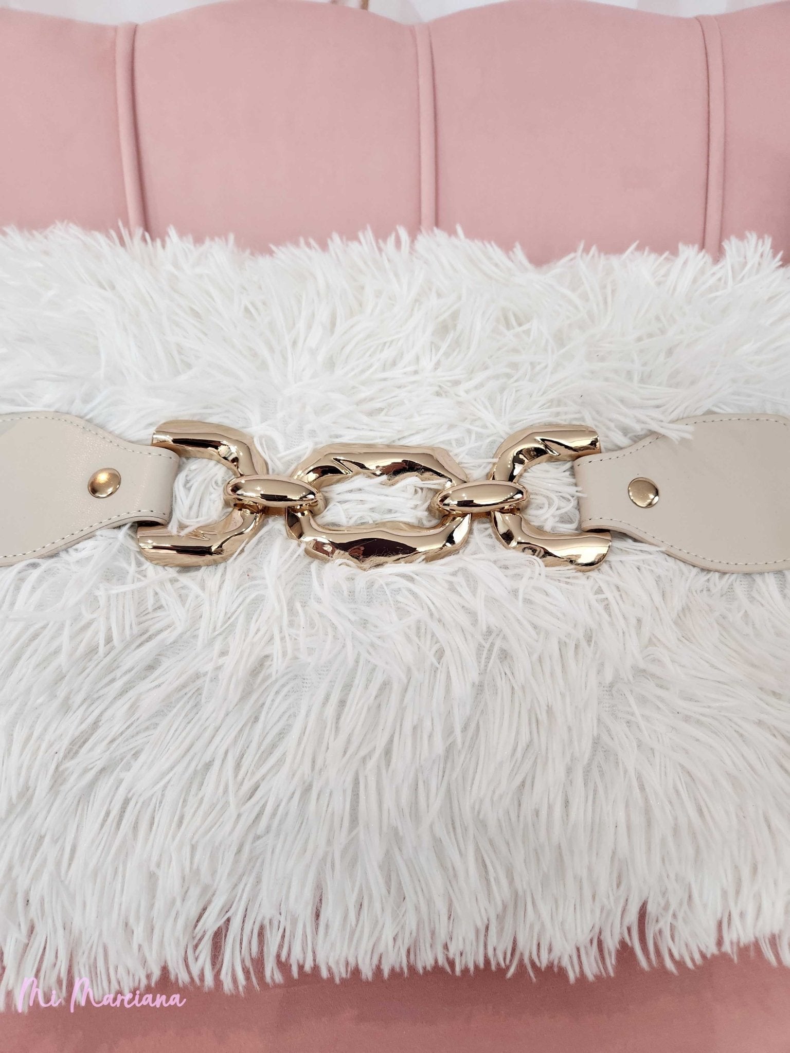 Cinturón eslabones dorado. Tela elástica. Se abrocha atrás con dos automaticos. Ancho 6 cm. Los complementos no admiten devolución