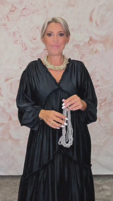 Un complemento elegante y con fuerza visual. Este collar de múltiples hilos de bolas plateadas añade brillo y sofisticación a cualquier conjunto, ideal para elevar looks tanto de día como de noche.