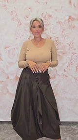 - ESTILO: Falda globo con diseño arquitectónico y botones frontales.