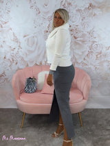 Falda de algodón larga. Abertura frontal. lleva pinzas detrás. cintura elastica