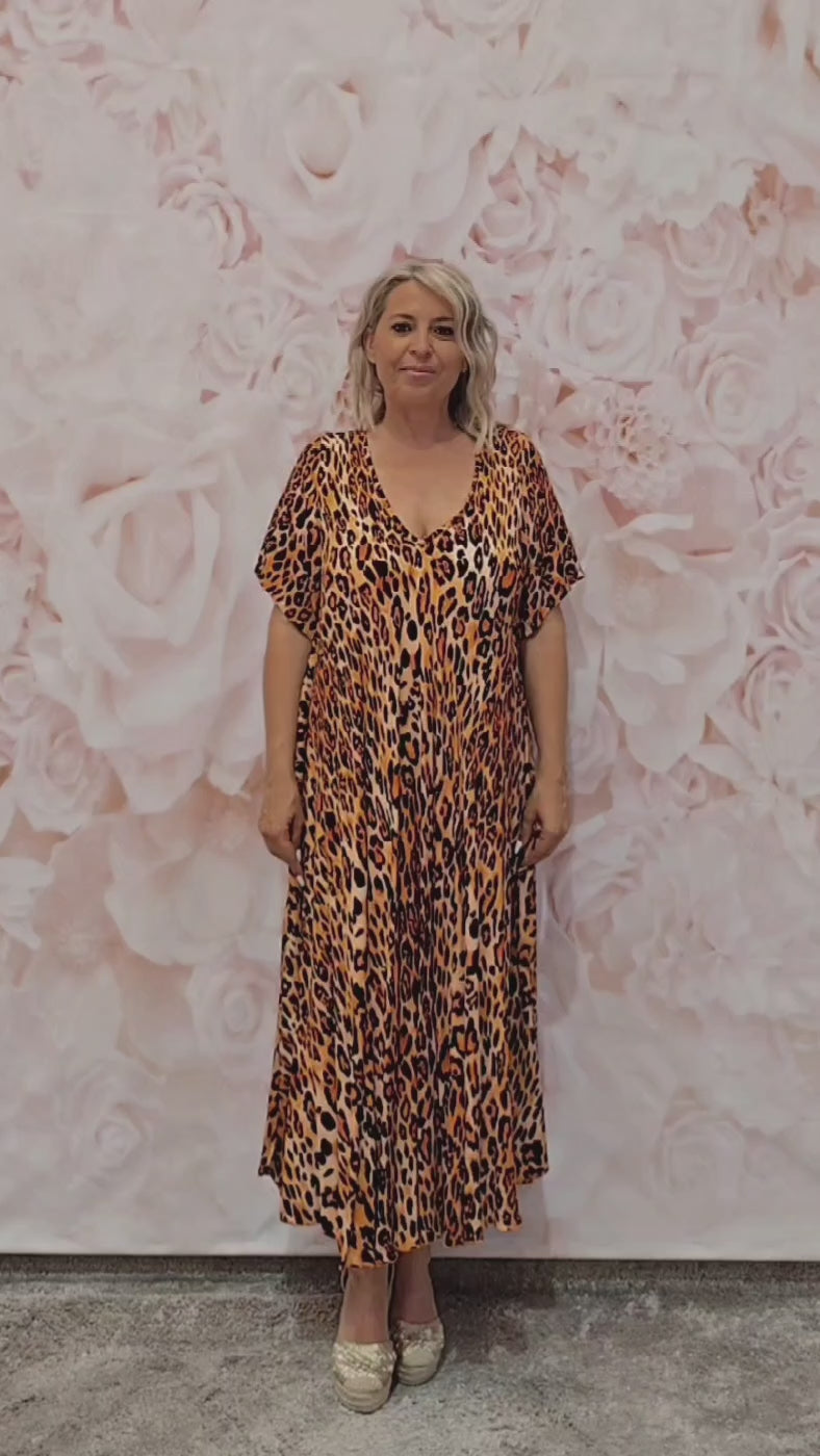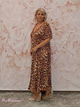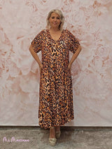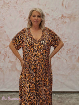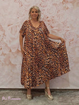 Vestido Oversize animal print con mangas con escote delantero y trasero en V. Bajo con mucho vuelo