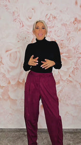 Un pantalón suave, estiloso y muy cómodo gracias a su tejido de antelina. Perfecto para crear looks elegantes o casuales con un toque sofisticado.