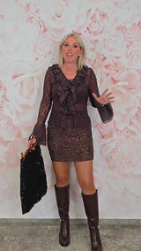 DETALLES: Manga larga con puño acampanado, lazada frontal y volante doble en el escote.