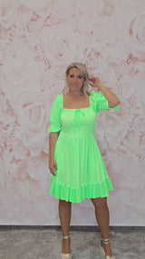 VESTIDO IBIZA CORTO VOLANTE REJILLA VERDE FLÚOR