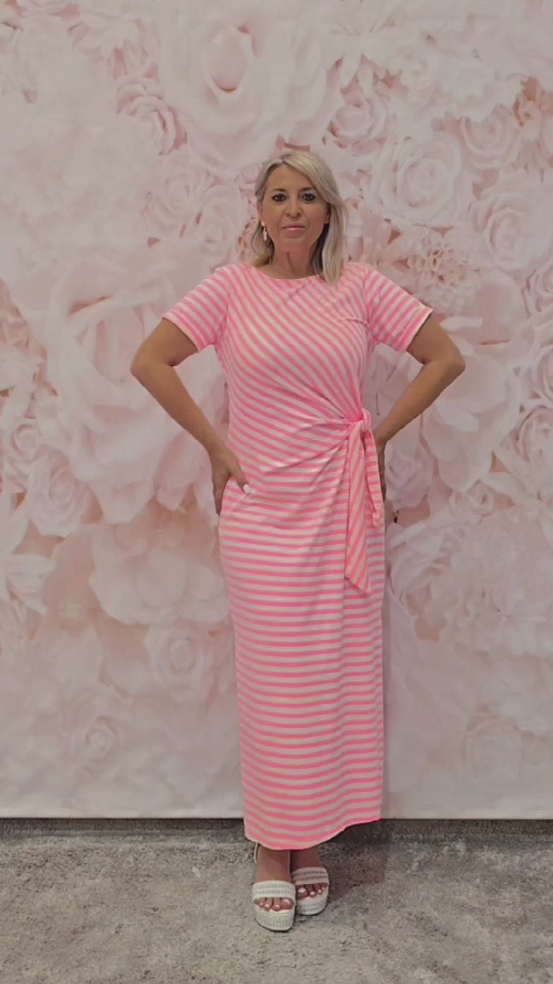 VESTIDO LARGO NUDO LATERAL RAYAS FLÚOR