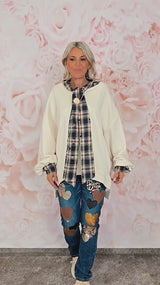 ESTILO: Sweatshirt casual com detalhe de laço e gola xadrez.