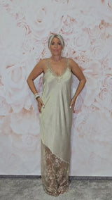- ESTILO: Vestido comprido de cetim com renda